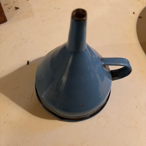 Emalje, Madam creme Kaffetragt med filter, Glud og marsstrand, Med en rigtig fin grøn kant og original pæn og velholdt