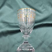 Artemisia seks krystalvinsglas dekoreret med 24 kt guld, håndlavet i Italien, blyfrit krystal, ny, højde 15 cm, fod 7 cm. Klik på den blå "gå til varen" knap, for at købe eller byde på denne vare. Den samlede pris vil blive vist inden du afgiver dit bud.
