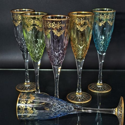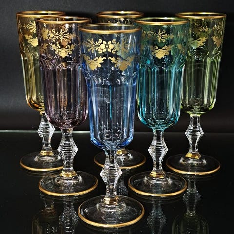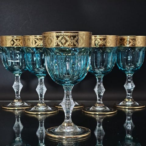 Artemisia: 6 vinglas af krystal af høj kvalitet dekoreret i 24 kt guld, med dybe poleringer og facetsformet stamme i 4 farvetoner