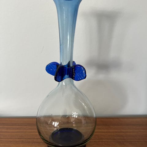 Smukt Italiensk design "large size" opalvase med en højde på cirka 23 cm (inklusive stopper) og en diameter på cirka 10 cm, håndlavet af mesteren glasblæseren A. Ballarin i Murano (Venedig). Vasens underside er håndsigneret af mesteren A. Ballarin og leveres med et ægthedscertifikat.