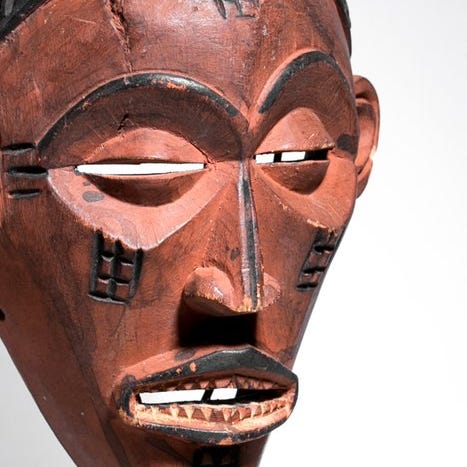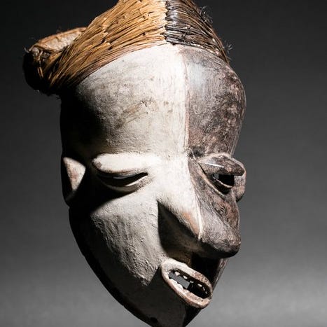 Maske fra Pende-folket, Demokratiske republikken Congo, Provenance Privat samling, Dimensioner 30 cm høj, 1 cm bred og 1 cm dyb, Vægt 1 g, Tilstand fremragende. Klik på den blå "gå til varen" knap, for at købe eller byde på denne vare. Den samlede pris vil blive vist inden du afgiver dit bud.