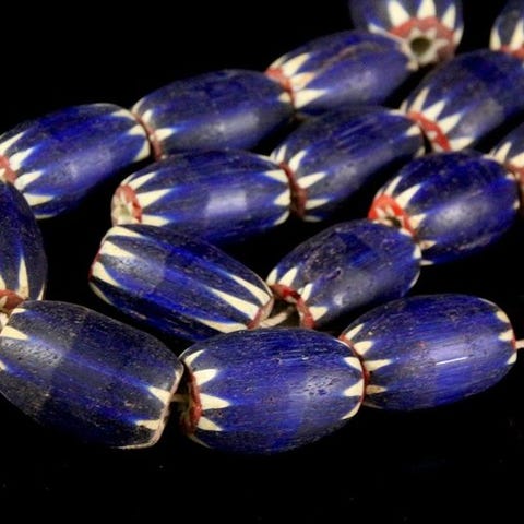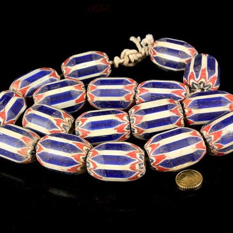 Collana med perler. Africa trade beads., en enkelt genstand fra begyndelsen af det 20. århundrede, rosetta-halskæde i seks lag i god stand, oprindeligt renoveret, måler 48 cm høj og 5 cm bred, provenance tilknyttet et venetiansk firma og halskæden monteret i 1975. Klik på den blå "gå til varen" knap, for at købe eller byde på denne vare. Den samlede pris vil blive vist inden du afgiver dit bud.