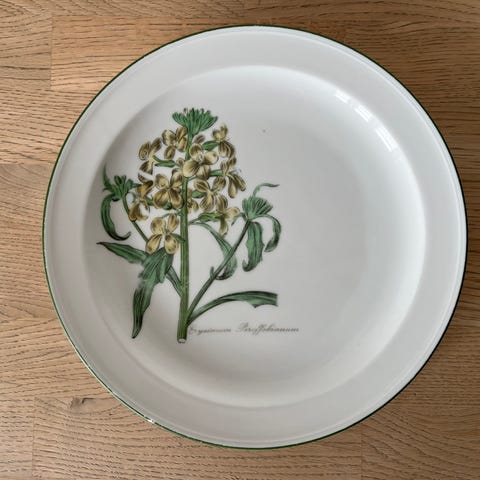 Hvert stykke viser en anden plante – kærligt illustreret og forsynet med det botaniske navn.