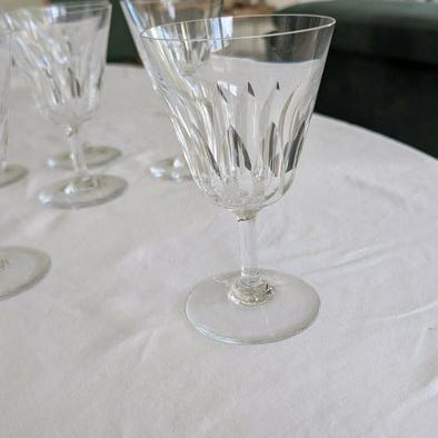 Elegant sæt af seks vandglas i fineste krystal, fremstillet af den berømte franske maison Baccarat, model Provence.
