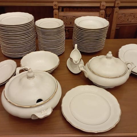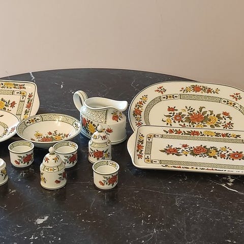 Sjældent og Somptøst Bordservice "Millefleurs" - 74 Dele - Demi-Porcelaine af Luksus - Badonviller, Frankrig (ca. 1930/1950)