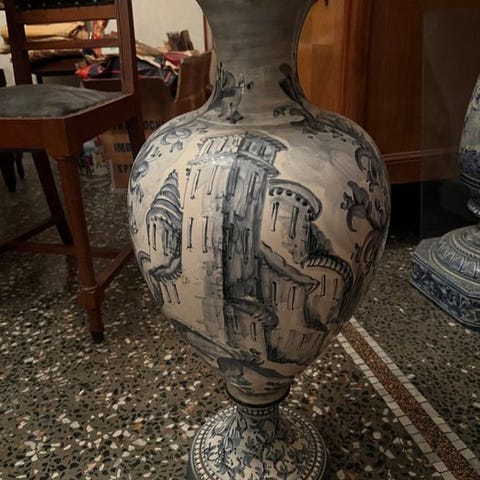 Magnifik Kollektionstønde i fajanse – Stil "Vieux Rouen" – Håndmalet (Portugal, ca. 1950)