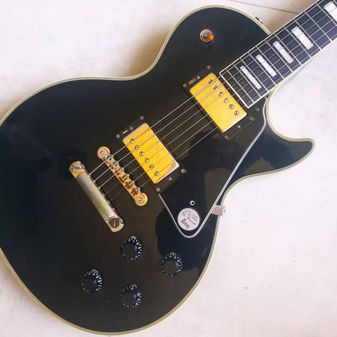 Greco Les Paul Custom EGC Black Beauty, fremstillet i Japan i 1980'erne og 1990'erne. På trods af sin alder er guitaren i meget god stand. Den viser tegn på slid på grund af sin alder, men dette påvirker ikke spilbarheden. Den spiller glat, uden problemer, og alt fungerer fuldstændigt. Hvad angår lyden, kan jeg samlet sige, at guitaren lyder smukt, typisk Gibson; det er svært at opnå den lyd i nye modeller i dag!