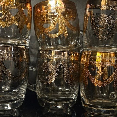 Drikke service - fejrende kæmpestore juvelkopper i rent guld - Krystal