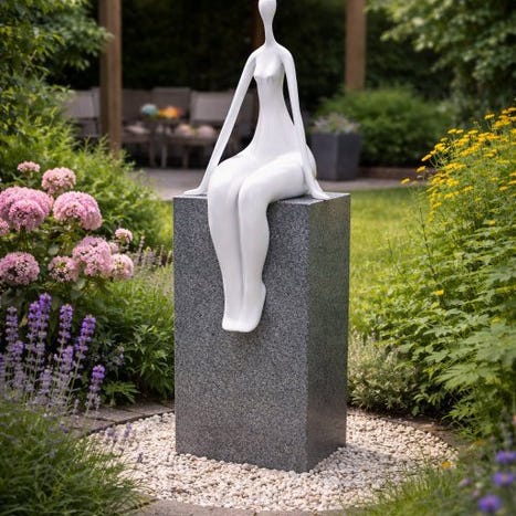 Dette værk forener en primitiv styrke med et moderne og geometrisk design, ideelt til at fremhæve moderne haver eller luksuriøse terrasser.