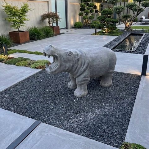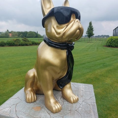 Udendørsskulptur af en gorilla i en dominerende pose, håndhugget i en sammensætning af marmorpulver og harpiks i et low-poly-design, mål: 103 cm høj, 103 cm bred og 87 cm dyb, oprindelse Italien, i fremragende stand. Klik på den blå "gå til varen" knap, for at købe eller byde på denne vare. Den samlede pris vil blive vist inden du afgiver dit bud.