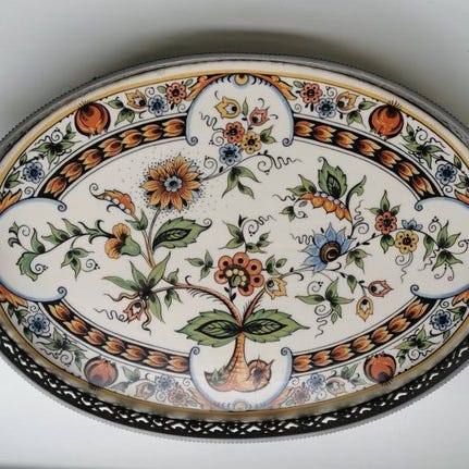 Sjældent og stor antik Castelli-serveringsbakke, perfekt. Mål: 34 × 52 cm, højden 4,5 cm.