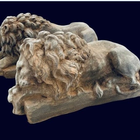En særlig skulptur, der forestiller 'Leone marzocco' i al sin enestående fremtræden, helt håndforfinet (stentryk). Den 'løve med florentinsk skjold' er Marzocco, en heraldisk løve, der hviler i højre pote og holder et skjold med den florentinske lilje. Det er symbolet på magt og den florentinske republik, som repræsenterede både byens dominans og den over dem underlagte. Dens oprindelse er knyttet til figuren Mars, den romerske gud, hvorfra navnet 'marzocco' stammer, og som blev et symbol på styrke og magt. Oprindeligt placeret i en nobel have er skulpturen egnet til at berige interiør i klassiske landhuse, depandancer eller overdådige haver. Der sikres en omhyggelig