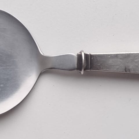 Håndtag af udskåret ben/ske rustfrit stål. Måske en blanding af gammelt og nyt?