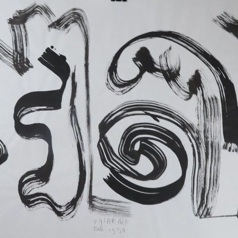 Dette er et karakteristisk værk af Ernst Vijlbrief (1934-2010). Gouache på tyndt papir, hvilket giver bølger. Forsynet med atelierstempel (nederst til højre). Værket har aldrig været indrammet og bliver omhyggeligt pakket og afsendt.