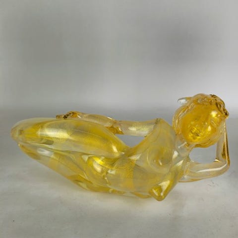 Dette vidunderlige centerstykke i klart krystal skinner af sin egen lys, beriget af raffinerede feston-dekorationer i 24k forgyldt guld påsat i hånden. Den buede silhuet og de neoklassiske detaljer forener vintagestemning med moderne luksus, og gør den til det perfekte centerstykke til kager og frugt eller et eksklusivt kunstobjekt til udstilling. Et sjældent stykke, der fanger blikket, ideelt for dem der søger et præg af særhed eller en uforglemmelig gave. Arbejdet er fuldstændigt håndlavet, fra glasblæsning til dekoration. Nyt, lavet i Italien. Betydelig vægt. Afprøvet emballage og forsendelse med tracking