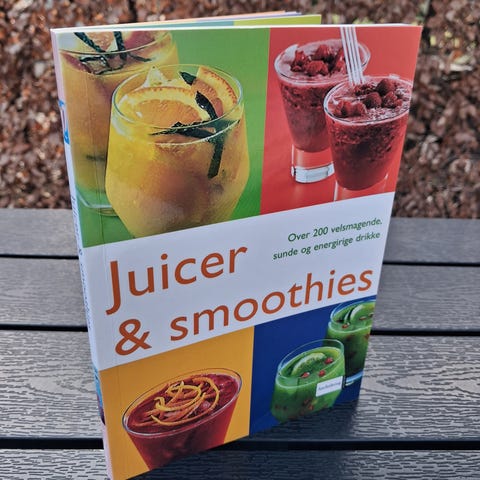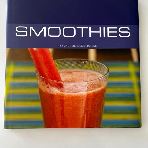 "Smoothies med frugt" kogebog i spiralindbinding. Bogen indeholder opskrifter på smoothies baseret på forskellige frugter, illustreret med farvefotos. Layoutet gør det nemt at have bogen liggende opslået på køkkenbordet under tilberedning. Velegnet som inspirationsbog til drikke og desserter med frugt.
