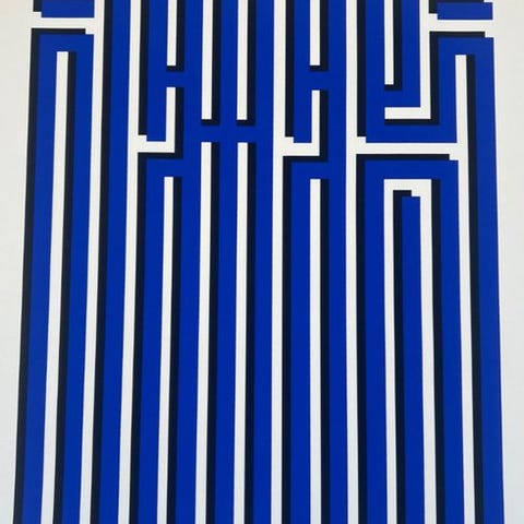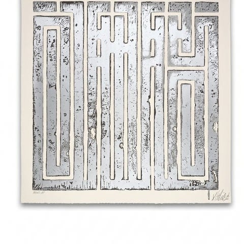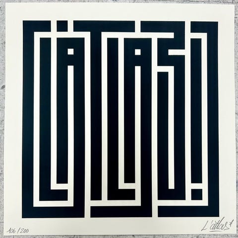 Opdag Assembled Vision (2023), en serigrafi signeret af L'Atlas, en kunstner kendt for sin grafiske og minimalistiske stil.