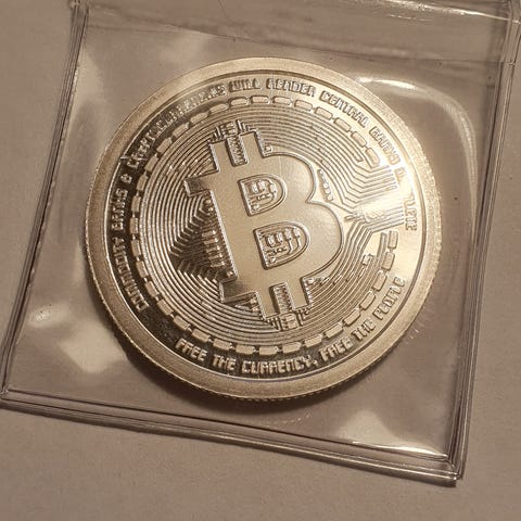 1/10 Troy Ounce - Guld 999 - 1/10 oz Gold $50 Liberia Bitcoin Coin-Bar in Woo...