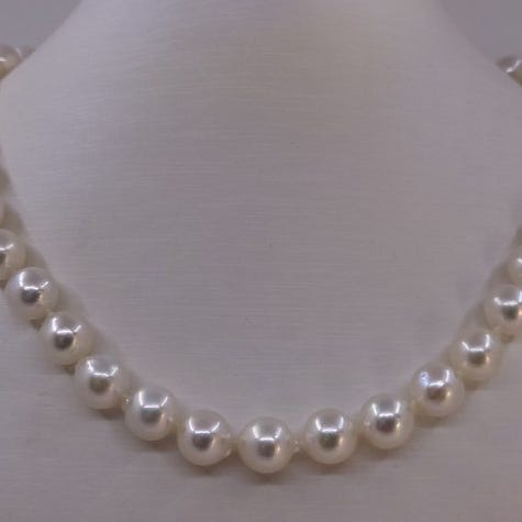 Denne klassiske Akoya-perle er en type kultiveret saltvandsperle, der stammer fra Japan, og har en karakteristisk hvid farve med en livlig overtone.