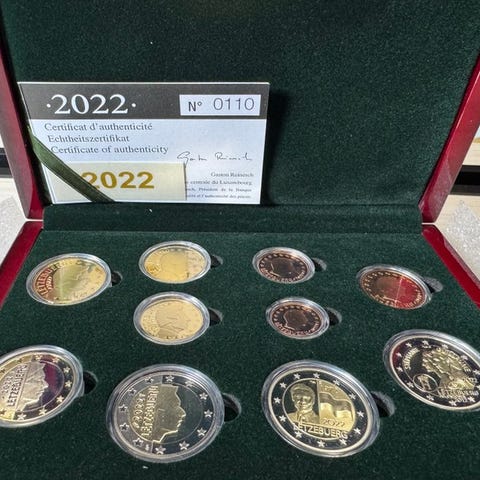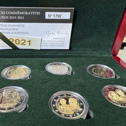 Luxembourg, fem 2-euro proof-sæson commemorative mønter til 2016–2018 i en sjælden kasse, udgået 2.500 eksemplarer, med certifikat for ægthed og fuldstændig original emballage. Klik på den blå "gå til varen" knap, for at købe eller byde på denne vare. Den samlede pris vil blive vist inden du afgiver dit bud.