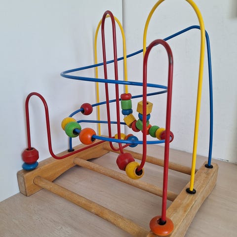 kids wood aktivitetslegetøj trækuglebane træ farverig