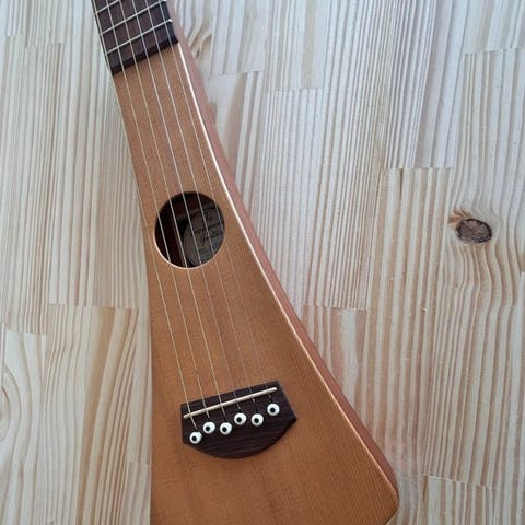 Can be detached and get compact for transport, in the meantime is a pro size guitar.