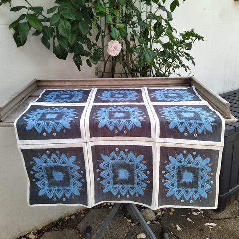 Dette hjemme hæklede tæppe er lavet af acryl og uld og er helt nyt