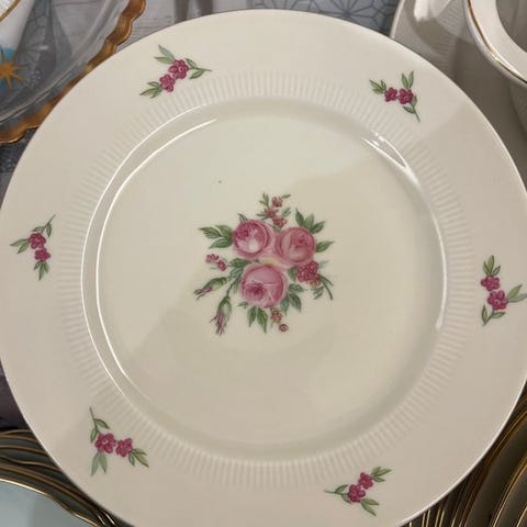 Sættet er generelt i god stand, ingen tallerkener har brud eller skår, dekorationen langs kanten er stadig behageligt at se på.