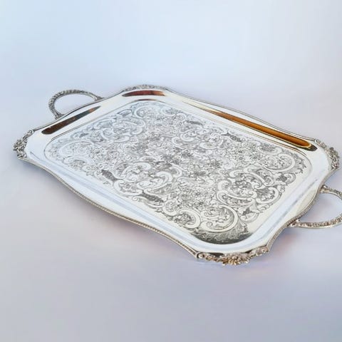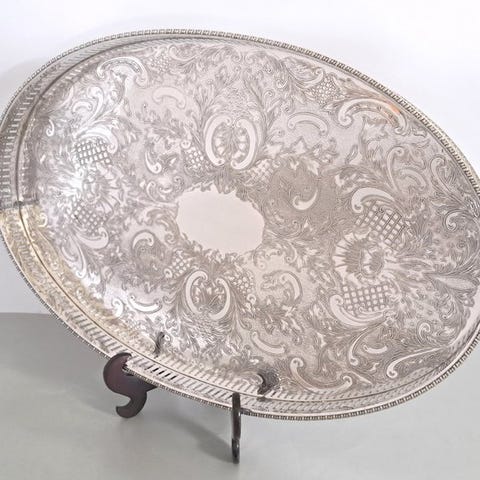 Serveringsbakke - Stor 37 cm vintage Viners Sheffield sølvbelagt indgraveret ...