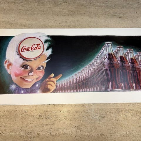 Dette er et ægte reklameskilt fra midten af århundredet for Snap Cola, der præsenterer et iøjnefaldende motiv af to kvinder med klassiske 1950’er-frisurer, som holder glas af drikkevaren. Baggrunden viser den ikoniske skyline af New York City, inklusive Brooklyn Bridge. Denne særlige "Tableau Cellulit" blev fremstillet i Bruxelles, Belgien til det europæiske marked, hvilket gør den til et unikt stykke af international reklamehistorie.