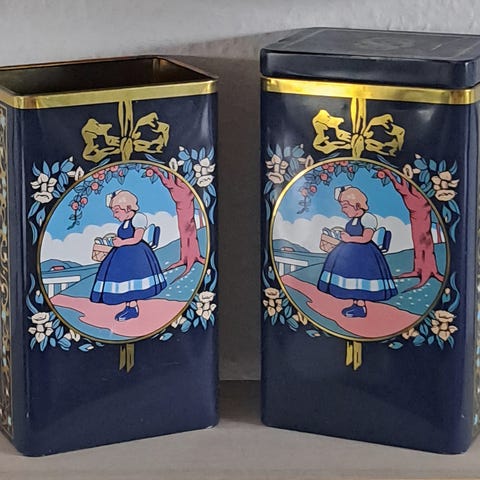 NB De ældste er originale dåser og ikke reproduktion og er DERFOR med ælde/patinering