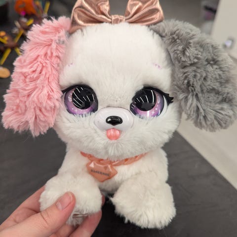 Ved tryk på moderens pote bevæger babyen sig rundt i moderens mave, og der afspilles hyggelige lyde og sjove melodier.