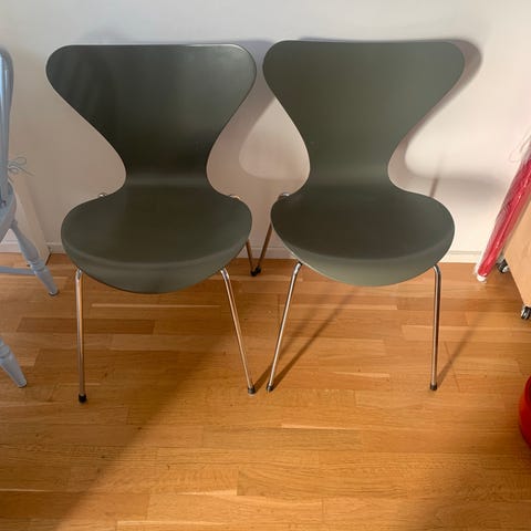 Flotte stole i olivengrøn. Arne Jakobsen.