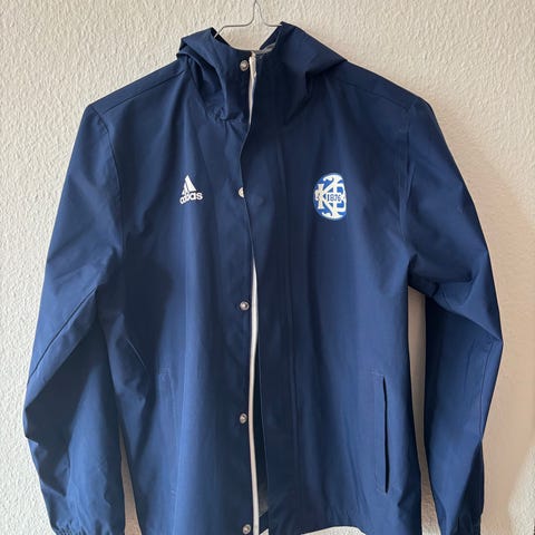 Adidas FCK fodboldjakke til mænd i størrelse M. Jakken er hvid med mørkeblå detaljer og har F.C. København-logo på brystet samt Adidas-logo. Den har gennemgående lynlås foran, hætte og lange ærmer med elastik ved håndleddene. Egnet som let overjakke til fodbold og anden sport eller hverdagsbrug i mildt vejr.