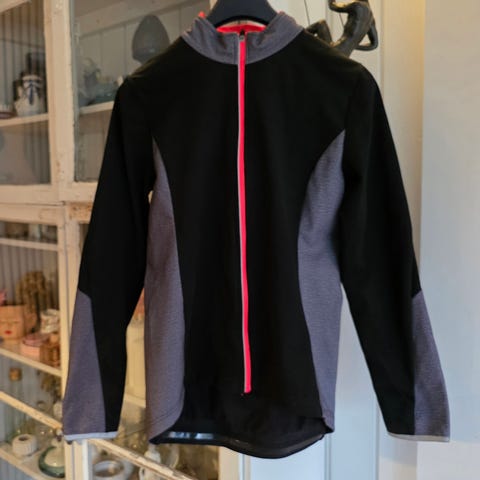 Ronhill Pure Running løbejakke til kvinder i størrelse XL. Jakken er i en lilla farve med kontrastkant ved lynlåsen. Letvægtsmodel egnet til løb, med gennemgående lynlås foran. Refleksdetalje bagpå for øget synlighed i mørke. Materialet fremstår tyndt og vindtæt, velegnet som yderlag over løbetøj i skiftende vejrforhold.