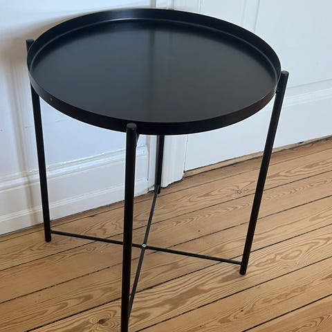 Sort marmorbord. I fin stand.