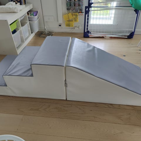 Sælger et dette sæt med skum-rutsjebane og trappe. Perfekt til motorikleg i stuen eller på børneværelset.