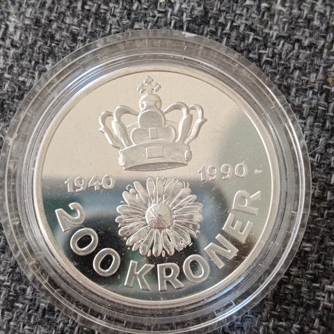 Danmark 200 kroner mindemønt præget i anledning af perioden 1940-1990. Sælges 750kr + porto