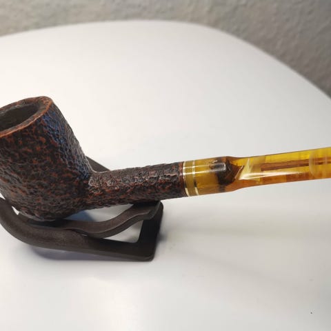 Smuk sandblæst og kunstfærdigt udført Stanwell pibe. Med akrylspids.