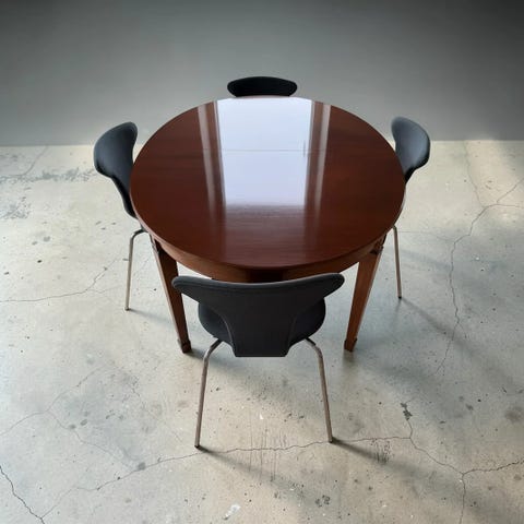 Smukt rundt / cikulær spisebord egetræ incl . 2 stk tillllægsplader.