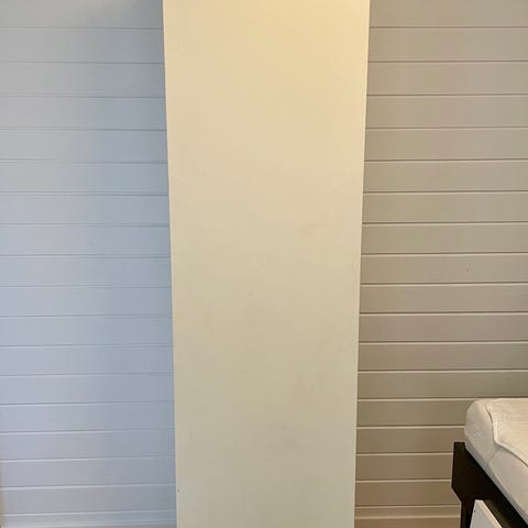 Der er garderobestand, skuffe og to hylder i skabet. Rigtigt god stand