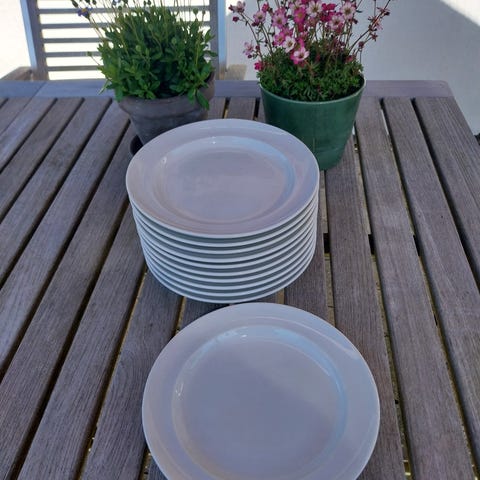 12 fine dybe tallerkner i stellet Hvidpot nr. 6290 i 1. sort. Diam. 19,5 cm. Design Grethe Meyer