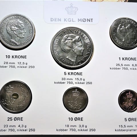 Sættet indeholder 50 øre, 1 krone og 10 krone. Øvrige møntværdier blev ikke udgivet det år.