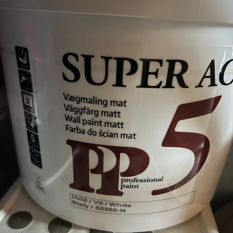 dækker særdeles godt, proff maling, vask og åndbar, eco mærket, dækker ca 90 kvm