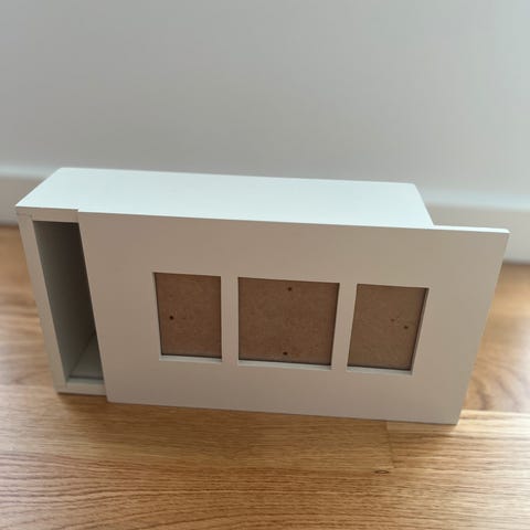 Mangler bagbeklædning, men kan stadig bruges til opbevaring, da vi har brugt den til nu.