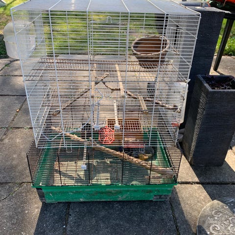 Fint hamsterbur med masser af tilbehør. Mål : L 77 cm. H 58,5 cm. D 47 cm.
