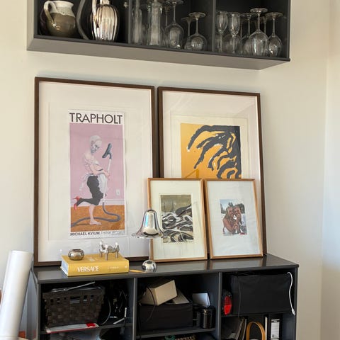 Væghængt reol med 4 rum. 2 rum med låger - 2 rum med hylder.