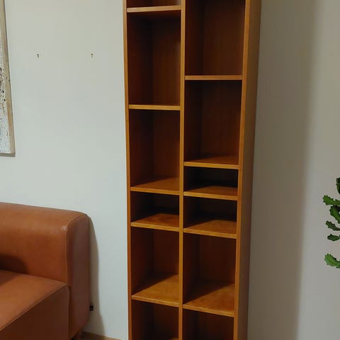 Bemærk at den ene reol er en anden træsort end de øvrige.