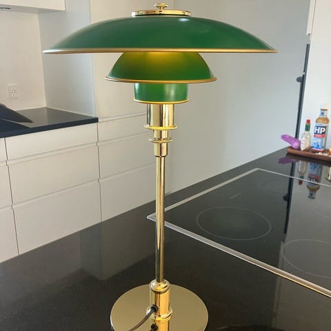 Sælger min usædvanlig flotte PH 3/2 jubilæumsbordlampe i messing med grønne skærme