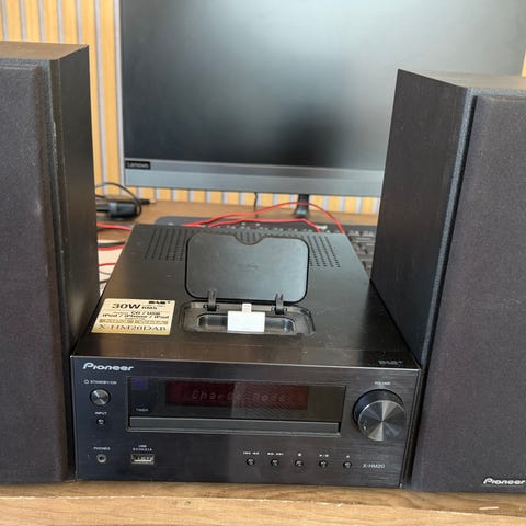 Anlægget har bluetooth, cd, DAB, FM. Kommer med to gode højttalere. Et fund til prisen.